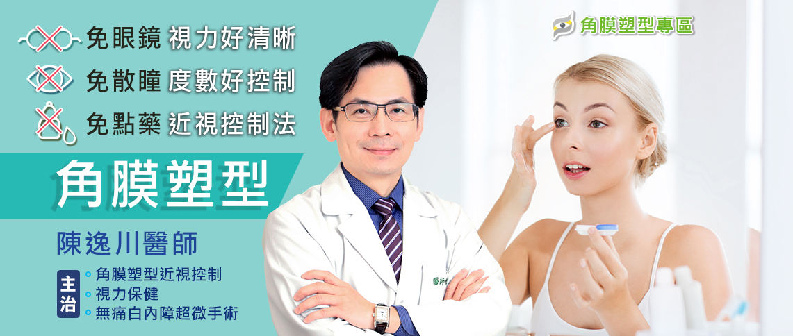 陳逸川醫師致力於眼科醫療多年,承襲診所在白內障超音波吸出術之卓越表現,更引進特殊人工水晶體植入,可達到去除老花眼、消除散光之目的。在學童視力矯正、近視控制方面,率先引進目前衛生署最先核可之近視控制鏡片,提供免點散瞳劑之近視控制方法,在目前快速累積的案例中成效卓著。